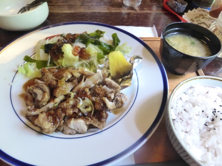 ランチのセットはお味噌汁にごはんで、お箸で頂けるのがこれまた気楽で、お味噌汁が口に含まれるとほっくり、まったりしてしまいます。自家製のチーズケーキはとても冷えていて濃厚で、最後に甘いものを食べてくなる私には大満足なランチのセットでした。