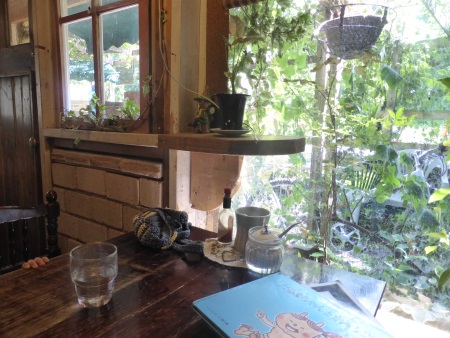 家の外は蔦が尽きることなく絡まり、窓から眺めているとお庭とお店の境目が分からなくなります。夏の日差しとそれを和らぐ植物が織りなす木漏れ日にうっとりとしてしまいました。