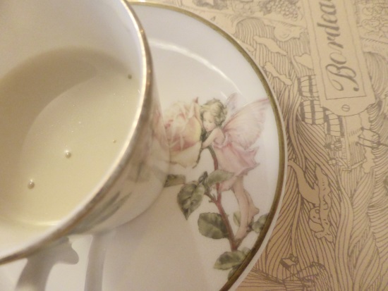 花の妖精~はベニシアさんのお勧めする本の中で紹介されており、綺麗な絵に惹かれて借りてみました。本の中には季節ごとのお花の妖精がたくさん描かれているのですが、薔薇の妖精の絵に見覚えがあり、過去のブログを検索していたところ、今年の5月に代官山へ行った際のブログに紹介されておりました。フレンチレストランのコースで出たスープのカップの皿に、ちょうど薔薇の妖精が描かれておりまして。