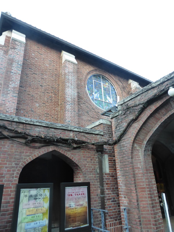 正門の右側には重厚な煉瓦造りの古い教会。大学の学生さんがパイプオルガンを奏で讃美歌を静かに歌っておりました。貴賓あるクリスマスに。