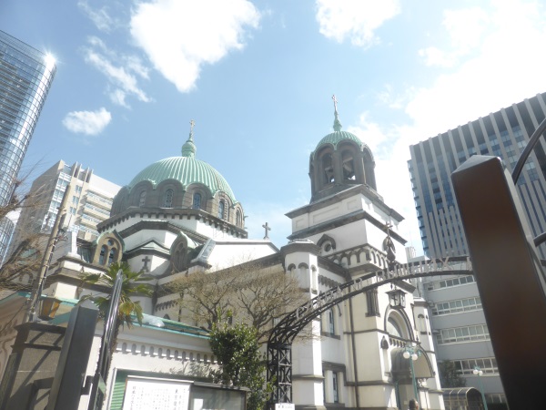 坂を上りニコライ堂へ。素晴らしい晴天です。