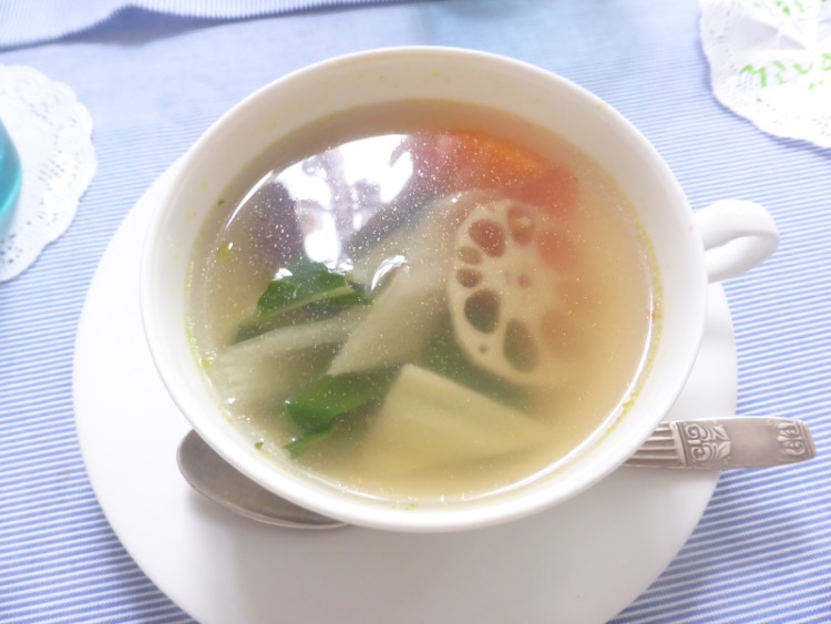 傍らで匙ですくったスープをトクトクと懸命に飲んでいる息子君。