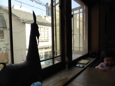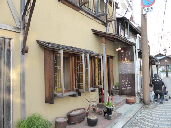窓から見える通りの石畳がノスタルジックで、見れば建物のほとんどが古民家のやうです。