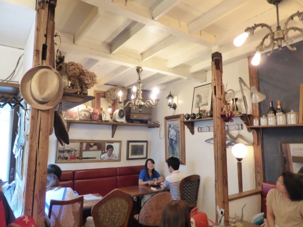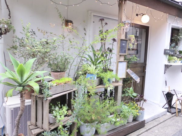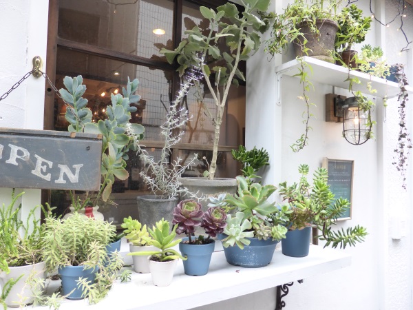 とても小さくすぐに満席になってしまうお店ですが、小さいことを上手に利用して、あちこちに飾られたアンティークやヴィンテージの雑貨、東京の狭い路地を風景に生き生きと育てられている観葉植物や多肉植物に、自分のお家のインテリアのヒントを頂いたやうな気がしました。