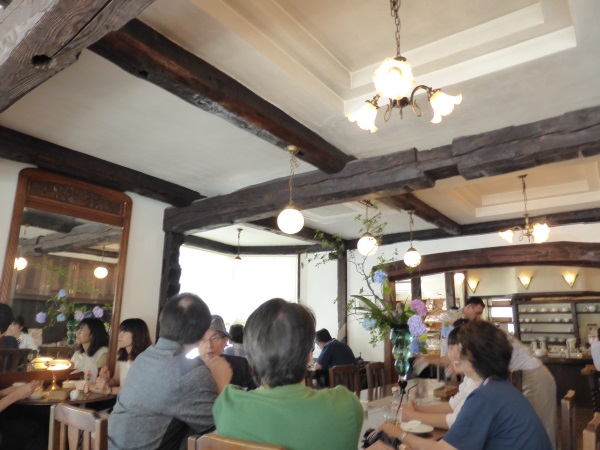 目的の場所へ向う前にカフェで食事を。このお店は沼田元氣先生の鎌倉スーベニイル手帖に紹介されていたカフェで。ライ麦を使ったドイツパンがとても美味しくて、間に挟まれたソーセージや添えられたマッシュポテトなど、小さなチーズケーキと珈琲も付いて、ランチ時にお店が混むのも当然で。場所も分かりやすい通りに面しています。アンティークではなさそうですが、照明や家具、小窓などヨーロッパの装い。アンティークショップにいるやうな装いのインテリアでした。天井にかけた太い木の梁のやうな、古いお家にお邪魔しているやうな気分にもなれます。