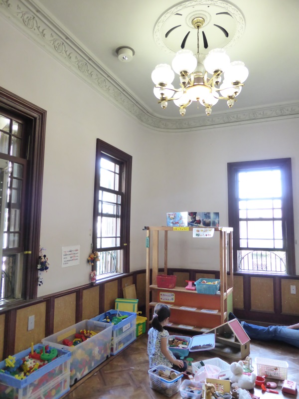 本日の目的の一つでもある長谷こども会館へ。こちらは明治41年の建物で、メダリオンとレースのやうに細かく施されたドア枠や窓枠など華美過ぎず、上品で。現在は子どもの為の施設になっておりますので大人だけでは入ることは出来ません。子を持って入室することが出来、以前から憧れていたので幸せこの上なく。内装、天井のモールディングなどどこを見ても、美しくしっとりとして、遊んでいる子供は大きくなった時に、そういえばこんな場所があったと鮮明に記憶に残ることでせふ。時々連れて来てあげたいな。