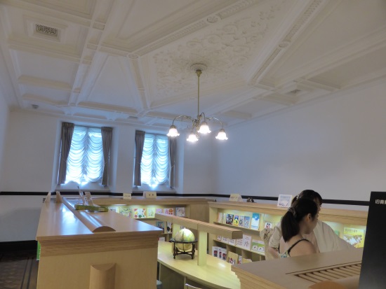 こどもの本の部屋は、エントランスや通路の開放感とは違いひっそりとして、余計なものが無く、心地良い明るさの、落ち着いた照明で部屋の中が包まれております。こういう空間でなら夏休みの子供たちもじっくりと本に向き合えるのだろうし、クラックな趣の中に身を任せて読書をすれば、叙情も備わりそうです。