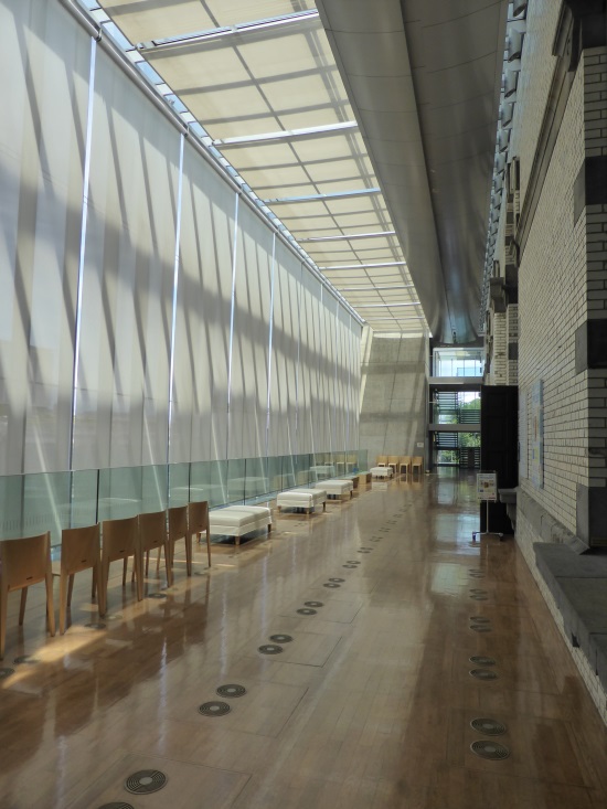 3階にはミュージアムやふれあいコーナー、休憩スペースなどが御座いまして、その作りはさらに天井の空間を生かしたものになっております。途中、息子がぐずってしまったのですが、この広い空間で抱っこをし、あやすと息子も落ち着くやうで、安らかに眠りに落ちていきました。
