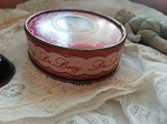 19世紀末から20世紀末はじめのアール・ヌーヴォーを模した1970s頃のヴァニティ・ティンです。フェイスパウダーが入ってましたので、 蓋を開けるとほのかに残り香がしてロマンチックです。昔の時に運ばれるやふな気がします。こすれや黒ずみまで"古い缶風に”模してある ユニークなヴァニティ・ティンです。若干の使用感はありますが古いものとしては良好の状態です。裏のブランドのロゴマークも素敵です。